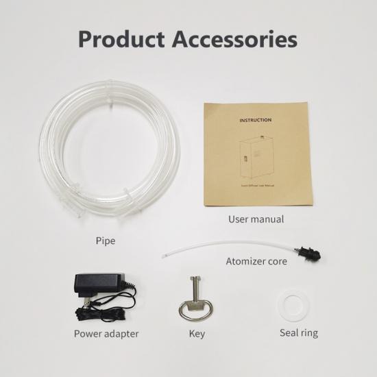 - Accessory - 10mm tube and connector for connection with HVAC system, atomizer core, seal ring, metal key, adaptor, user manual, etc.
