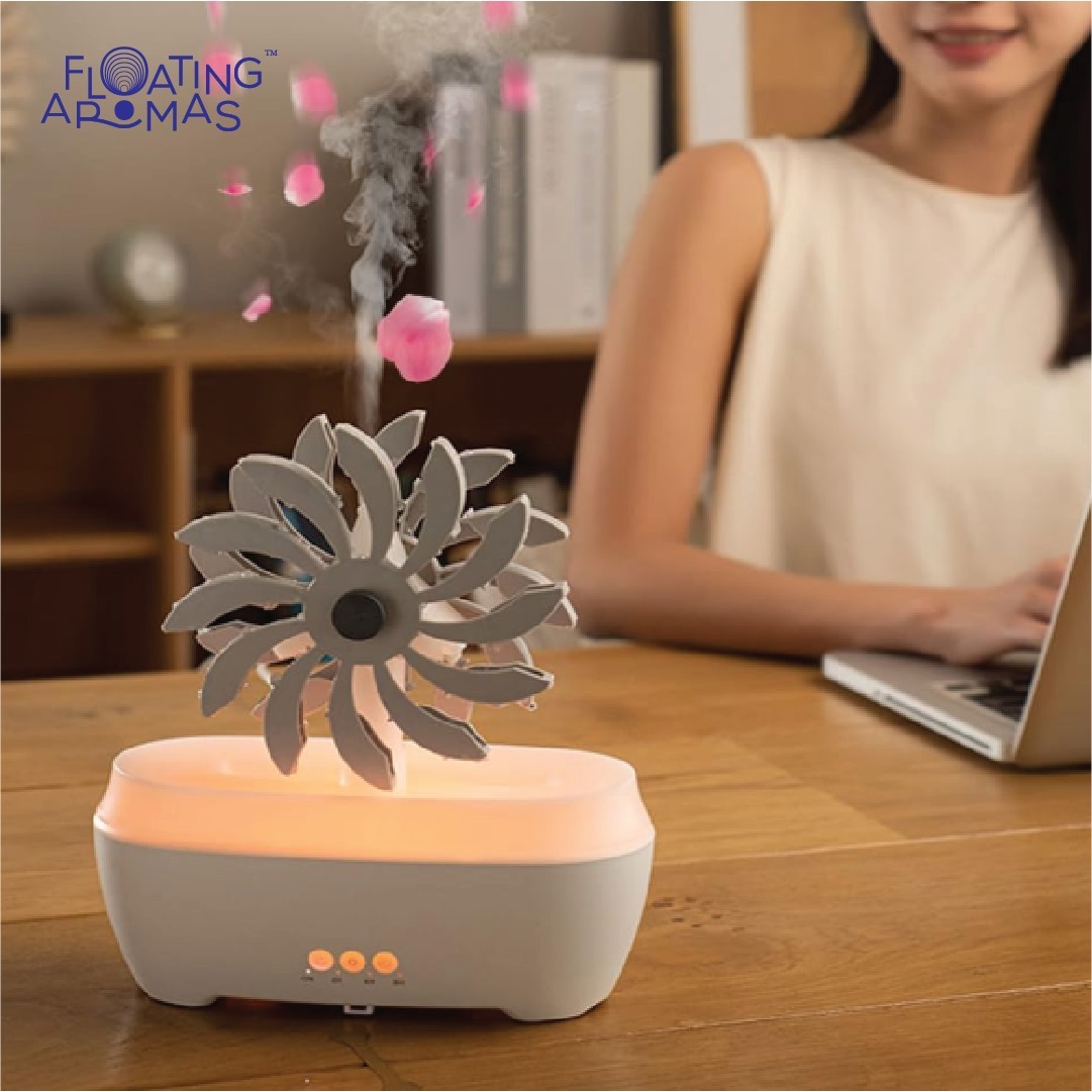 An ultrasonic diffuser uses vibrations to create a fine mist of water and essential oils, enhancing air quality and ambiance.